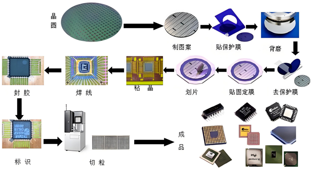 Chip manufacturing: mainly covers photoresist coating/removal, exposure, etching, ion implantation, physical/chemical vapor deposition and other technical operations, as well as grinding, cutting and other back-end processes