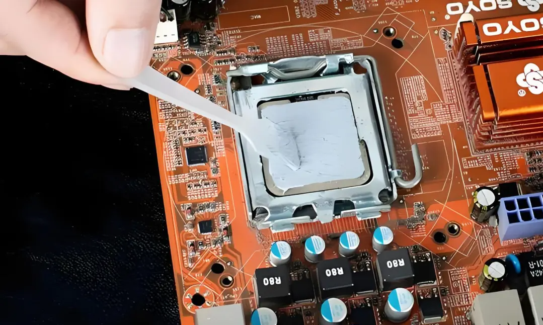 The motherboard CPU chip and inductor element of a well-known projector product use A lpha P roTMThermal conductive mud 5403 is directly connected to the heat sink. Compared to traditional thermal pads, thermal conductive mud can better fill gaps between non-planar surfaces. It has better plasticity compared to silicone grease, making it more suitable for filling larger gaps. This material excels in interface filling, forming a continuous thin layer on the surfaces of chips and inductors, ensuring a seamless and tight bond with the heat sink, thus enhancing heat transfer efficiency.