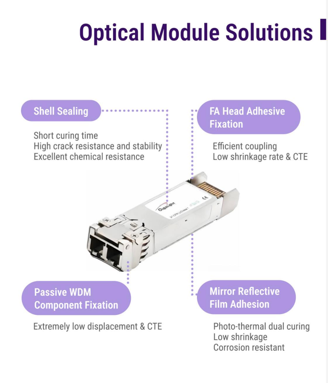 Optical communication components are like the "building blocks" of optical communication systems and networks; they are the most fundamental parts. Various types of optical components are not only indispensable "parts" in optical communication systems but also their performance and quality can significantly impact how smoothly and reliably the entire system operates. Additionally, the adhesives used to bond these optical communication components together are also crucial for maintaining the quality of the components.